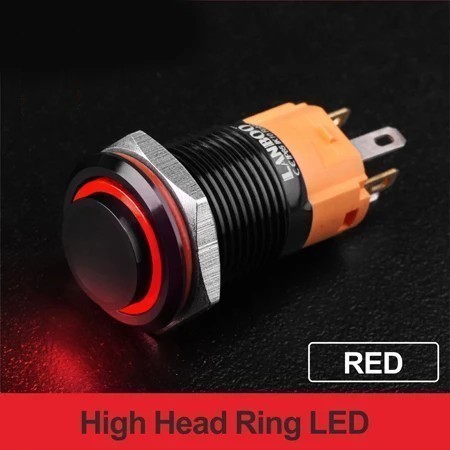 | LB16A-G11Z-ER3-8V-N Кнопка антивандальная выпуклая, нормально открытая, С ФИКСАЦИЕЙ, круговая LED, RED, 3-8V, латунь