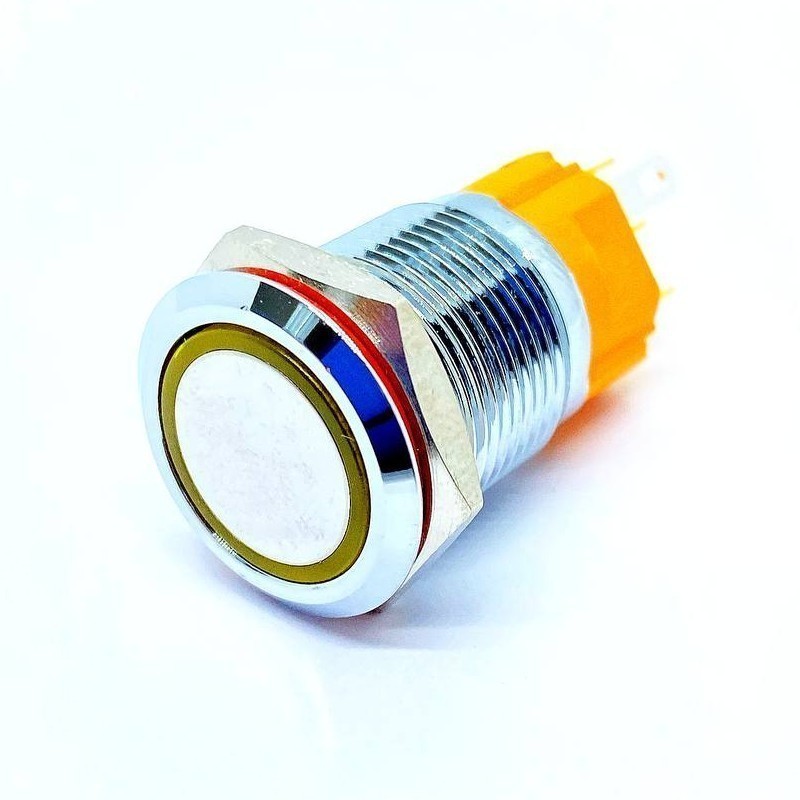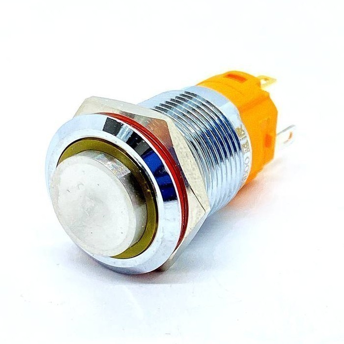 | LB16A-P11Z-EY3-8V-N Кнопка антивандальная плоская, нормально открытая, С ФИКСАЦИЕЙ, круговая LED, Yellow, 3-8V, латунь