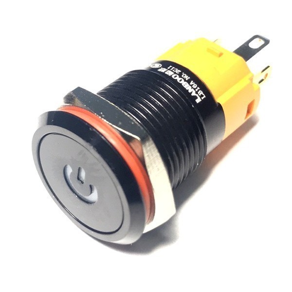 | LB16A-P11Z-DYR9-24V-A Кнопка антивандальная плоская, нормально открытая, с фиксацией, символ ON/OFF, RED, 9-24V, aluminum oxide black