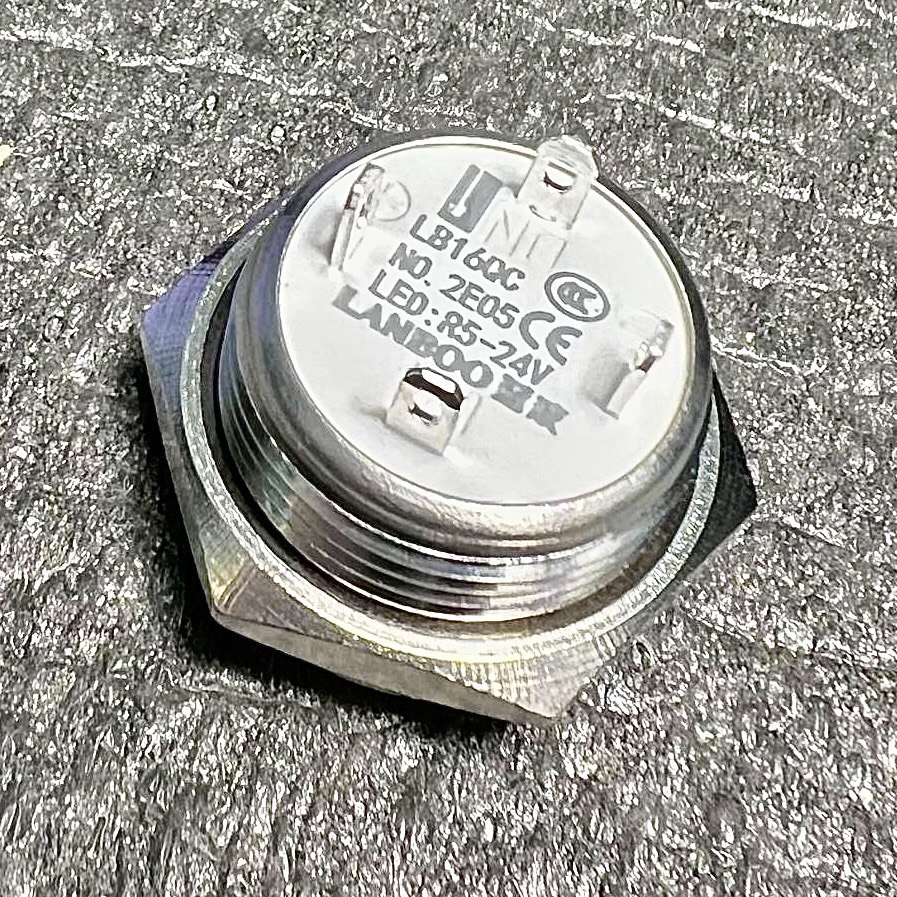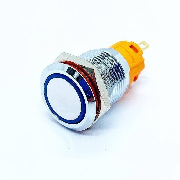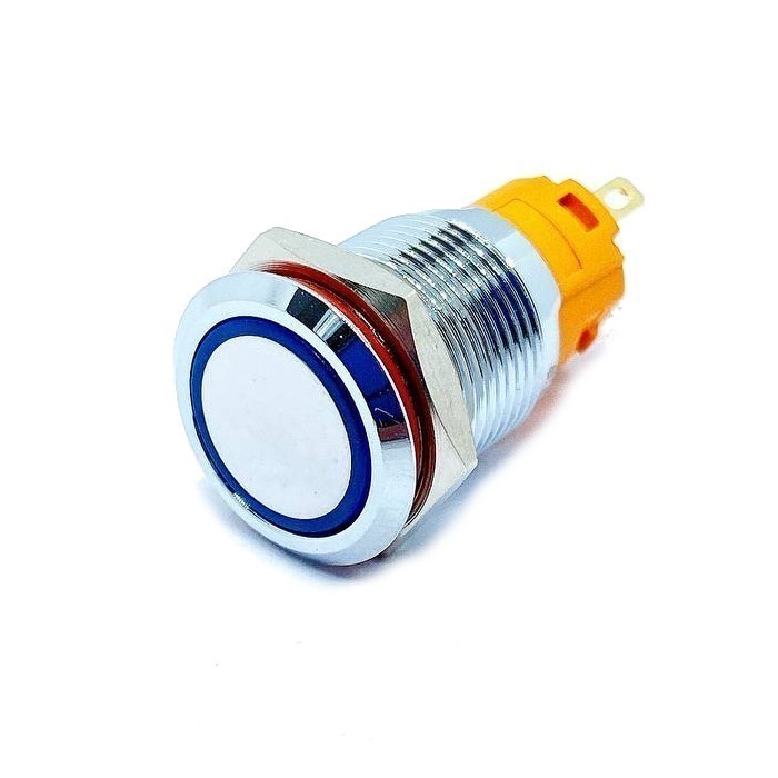 | LB16A-P11Z-EB3-8V-N Кнопка антивандальная плоская, нормально открытая, С ФИКСАЦИЕЙ, круговая LED, BLUE, 3-8V, латунь