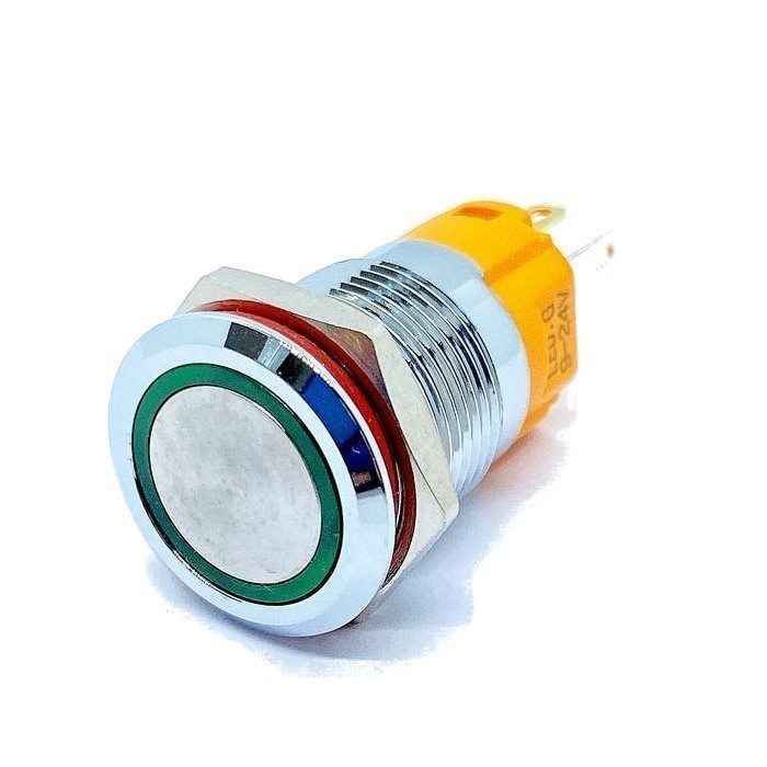 | LB16A-P11Z-ERG9-24V-N Кнопка антивандальная плоская, нормально открытая, С ФИКСАЦИЕЙ, круговая LED, двух-цветная: Красный/Зеленый bicolor (RED/GREEN - CC), 9-24V, латунь