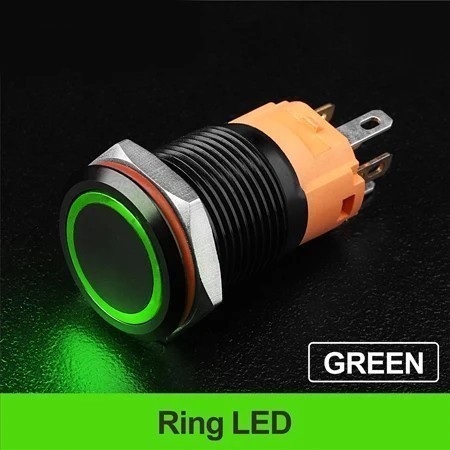 | LB16A-P11Z-EG3-8V-N Кнопка антивандальная плоская, нормально открытая, С ФИКСАЦИЕЙ, круговая LED, GREEN, 3-8V, латунь