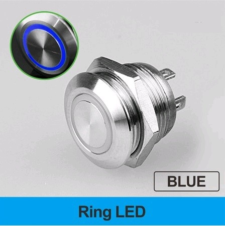 LB22C-P20Z/EB9-24V/S(L) Кнопка антивандальная D=22mm, 2NO, плоская, нормально открытая, С ФИКСАЦИИ, круговая LED BLUE(синий), High-Current, MAX: 15A/250VAC