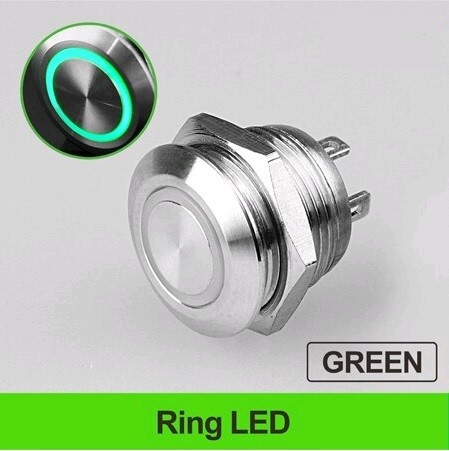 LB19QC-P10F-EG12V-S Кнопка антивандальная Клавиша с коротким ходом, 19 мм, круговая LED, GREEN, без фиксации, 12V(5-24В)