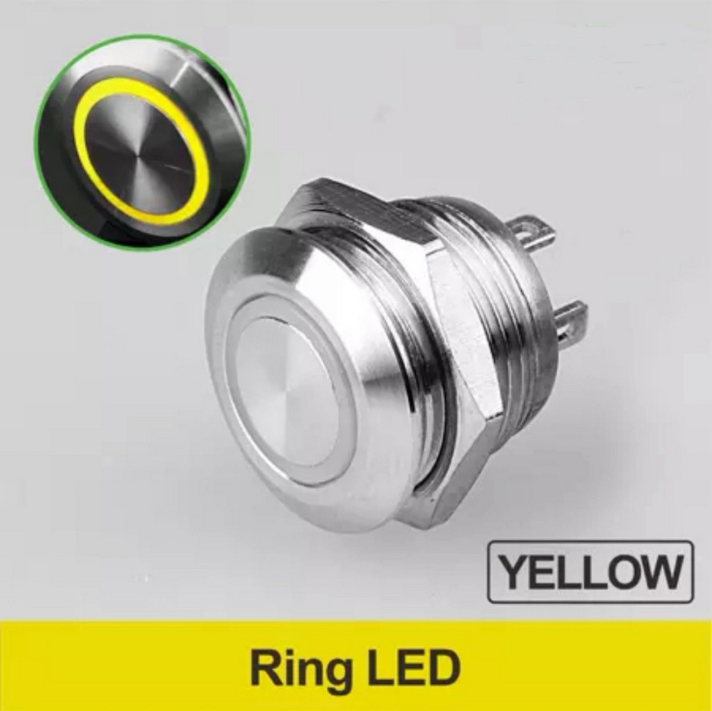 LB22A-P11Z-EY9-24V-S Кнопка антивандальная Плоская, нормально открытая, D=22 мм, с фиксацией, круговая LED, YELLOW (желтая), 9-24V, нержавеющая сталь