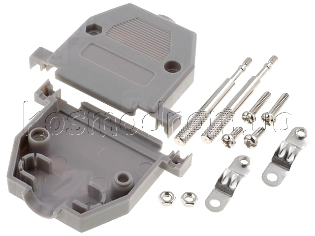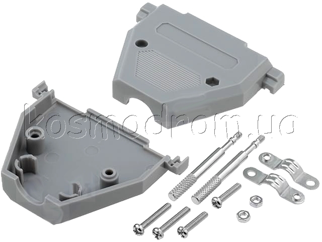 | DBW-25P-S-G D-SUB корпус Корпус для разъема D-SUB, пластиковый ABS UL94HB, цвет серый, длинна крепежа 14.8 мм