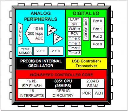 F060), USB (серия F320), SMBus/I2C, UART, SPI. Имеется порт с