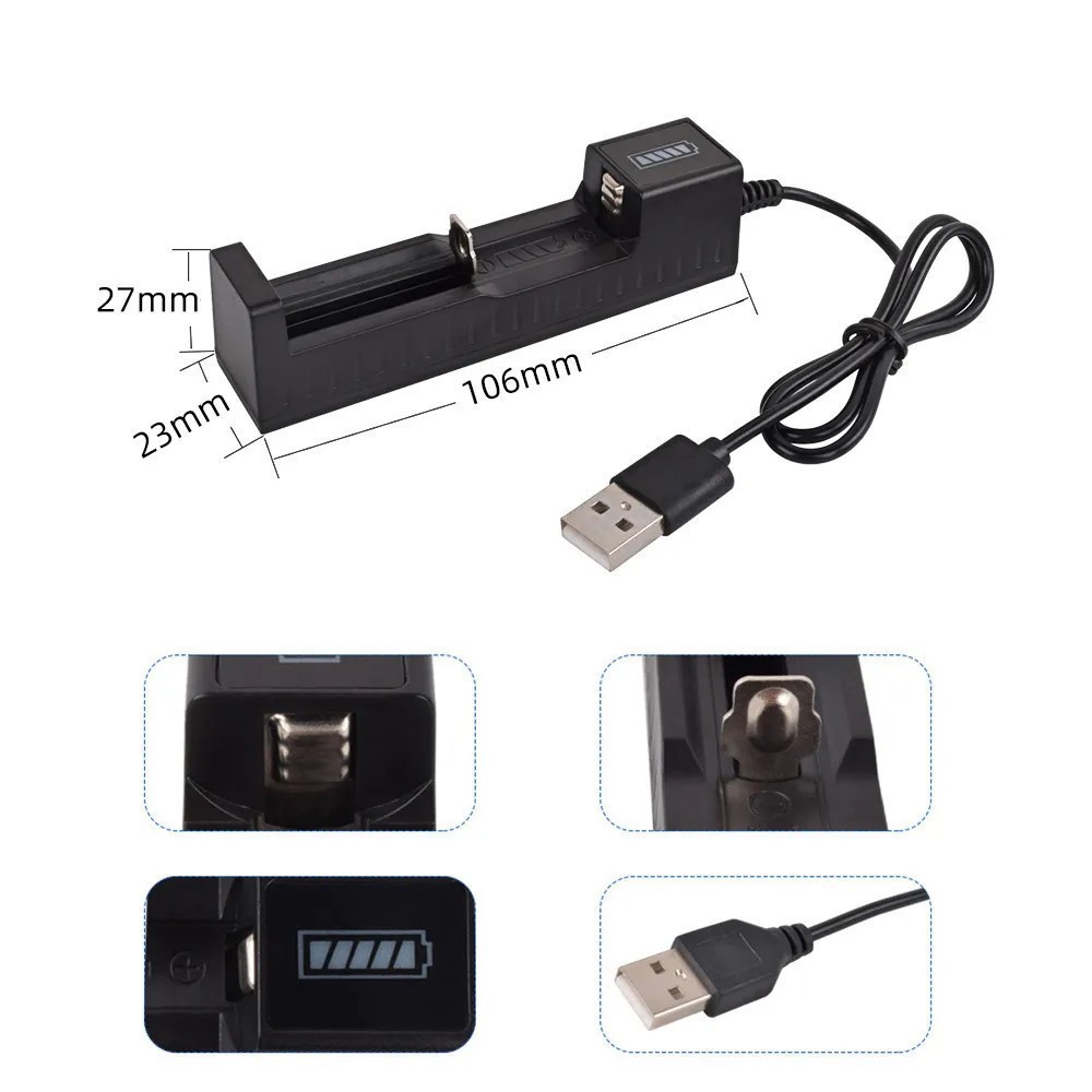 | 18650 USB Charger 1X Зарядные устройства для аккумуляторов Выходное напряжение: DC 4.2V 1000mA, индикатор зарядки, Size: 125 * 92 * 30 мм. Совместим с 10440 14500 16340 16650 14650 18350 18500 18650