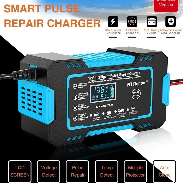 | CHARGER ZYX-J30 12V8A 24V4A Blue Автомобильное зарядное устройство Интеллектуальное зарядное устройство для автомобильного аккумулятора ZYX-J30 в автоматическом режиме зарядит или восстановит ваш аккумулятор.