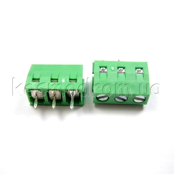 | DG128R-5.0-03P-14-00AH Клеммник Клеммник винтовой,с рельефной обоймой,угловой,шаг 5мм.контактов 3:300В.15А. зеленый