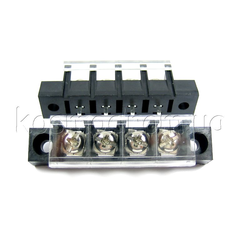 | DG58C-A-04P-13-00AH Клеммник барьерный Барьерный клеммник с крышкой, с фланцами, шаг 10 мм, контактов 4, луженые, 300 В. 20А.Черный