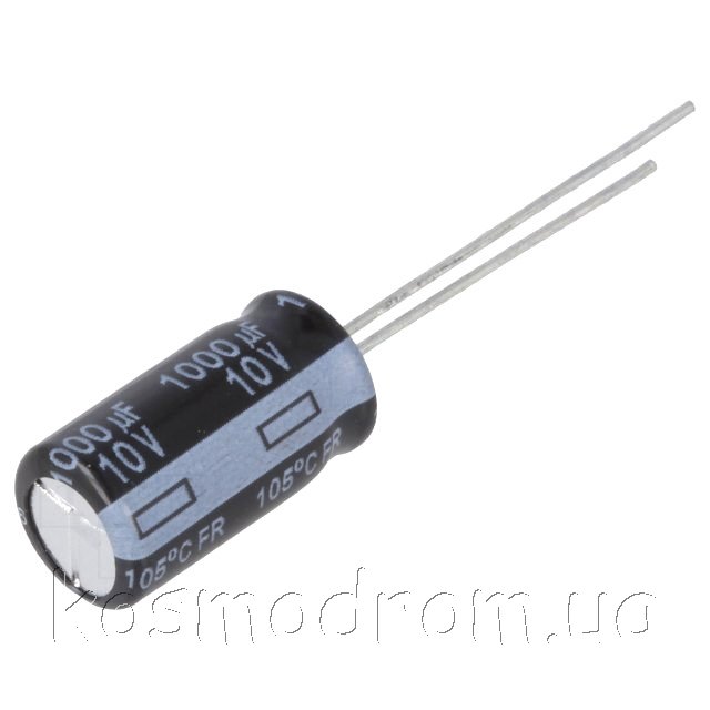 | EEUFR1E102 Конденсатор электролитический Ёмкость 1000мкФ, напряжение 25В, размер D10 x 20мм. Импеданс: 20мОм