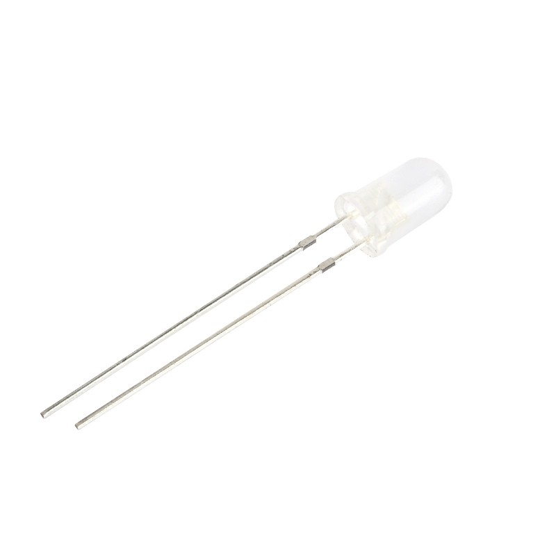 Светодиод 5 мм. белый white, круглый, прозрачный, 20°, 17500 мКд. 25 мА. 3,5 В. 5000...5500 К.