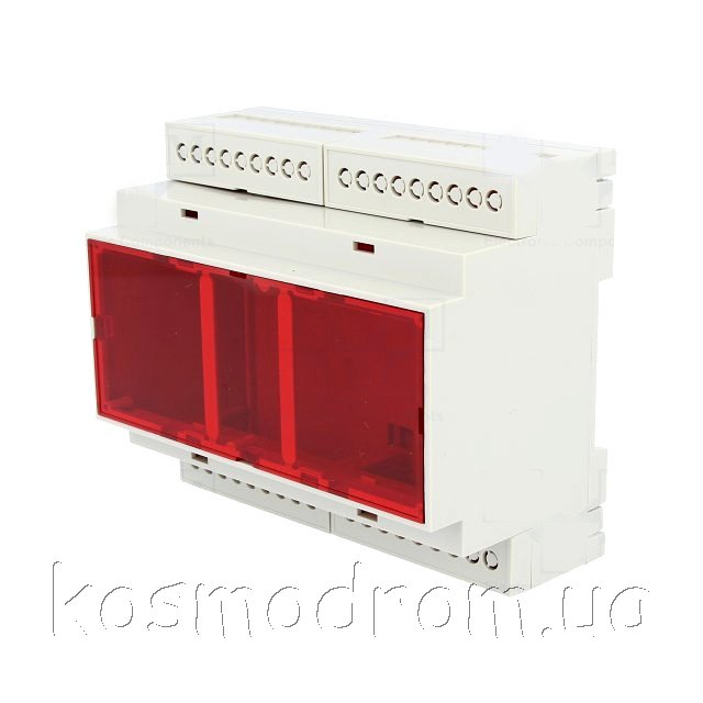 | D6MG-IRC Корпус на ДИН-рейку корпус на DIN рейку светло серого цвета, из ударопрочного жаростойкого ABS пластика UL-94V0. Габаритные размеры составляют: по длине 106.25мм, по ширине 90.2мм и по высоте 57.5мм. Цвет панели красный