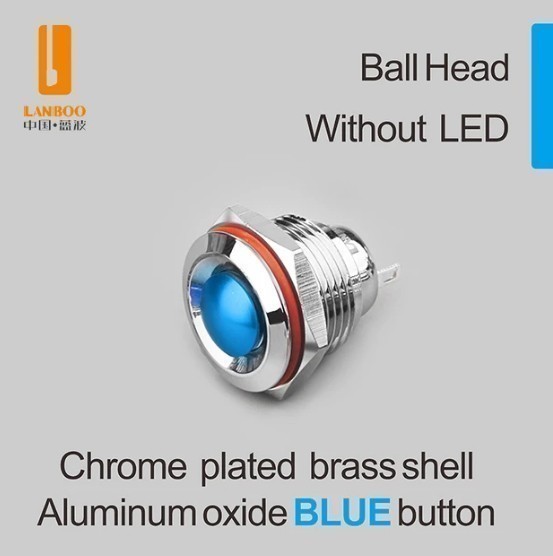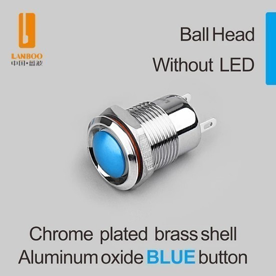 | LB12B-Q10F-N-A(L)blue Кнопка антивандальная Круглая, 12 мм, нормально открытая, без фиксации, aluminum oxide BLUE, синий, без подсветки