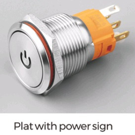 | LB19A-P11Z-DYR9-24V-N Кнопка антивандальная плоская, нормально открытая, D=19 мм, С ФИКСАЦИЕЙ, символ ON/OFF, RED, 9-24V, латунь никелированная, круглая