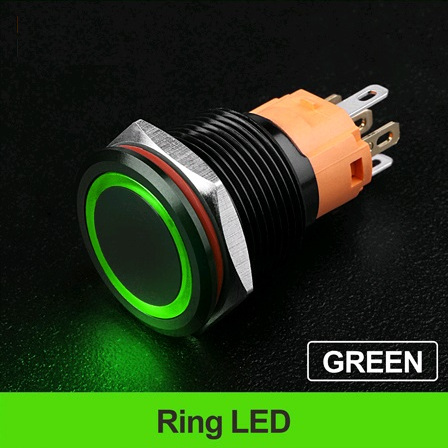 | LB19A-P11F-EG9-24V-A Кнопка антивандальная плоская, NO-NC, D=19 мм, без фиксации, круговая LED, GREEN, 9-24V, черная black