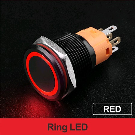 | LB19A-P11F-ER9-24V-A Кнопка антивандальная плоская, NO-NC, D=19 мм, без фиксации, круговая LED, RED, 9-24V, черная black