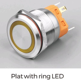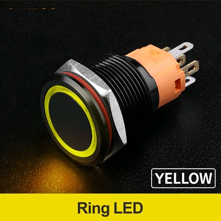 | LB19A-P11Z-EY9-24V-A Кнопка антивандальная плоская, NO-NC, D=19 мм, С ФИКСАЦИЕЙ, круговая LED, Yellow, 9-24V, черная black