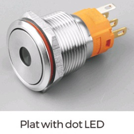 | LB19A-P11F-DR9-24V-N Кнопка антивандальная плоская, нормально открытая, D=19 мм, без фиксации, точечная LED, RED, 9-24V, латунь никелированная, круглая