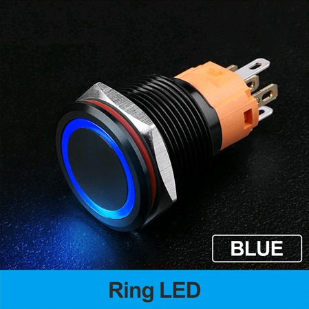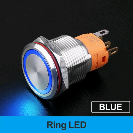 | LB19A-P11F-EB9-24V-A Кнопка антивандальная плоская, NO-NC, D=19 мм, без фиксации, круговая LED, BLUE, 9-24V, черная black