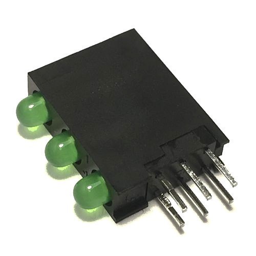 | OSG8NX3E34B-3F3C Светодиод выводной 3 мм 3 в 1 Светодиод в корпусе, желто-зеленый/желто-зеленый/желто-зеленый, 30 градусов, яркость 60 мкд, 565-575 нм, диффузный