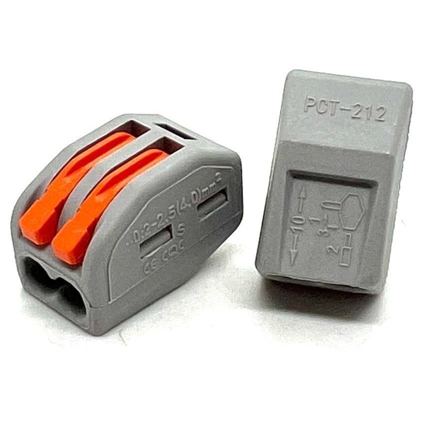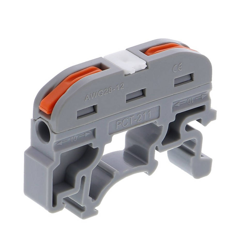 | PCT-211-Gray Клемма строительно-монтажная Зажим безвинтовой 1 пара 0,08-4,0 кв.мм проходной на DIN-рейку