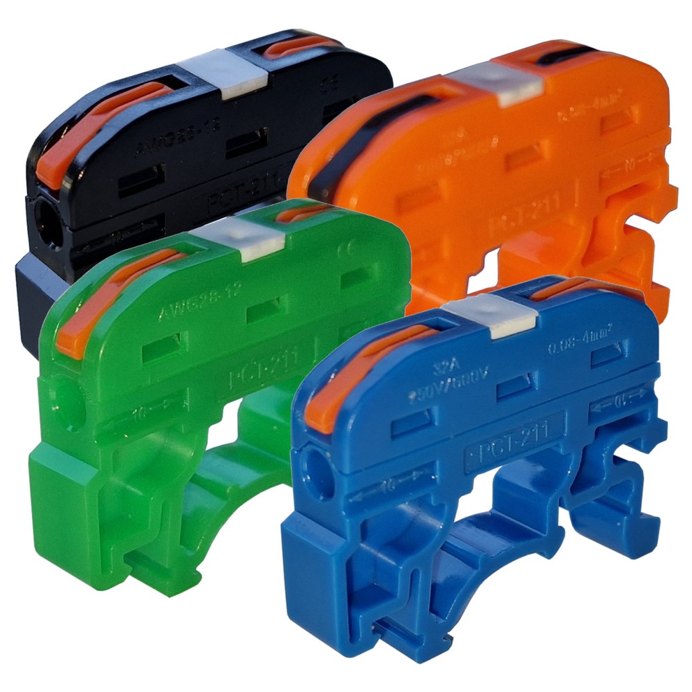 | PCT-211-Black Клемма строительно-монтажная Зажим безвинтовой 1 пара 0,08-4,0 кв.мм проходной на DIN-рейку