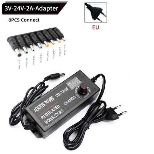 | ADJ AC/DC Adapter 3-24V 2A with 8 connectors Сетевой адаптер AC/DC Сетевой адаптер универсальный. Вход: AC 220 В. Выход: DC 3-24 В 2A. 8 различных переходников для разъема