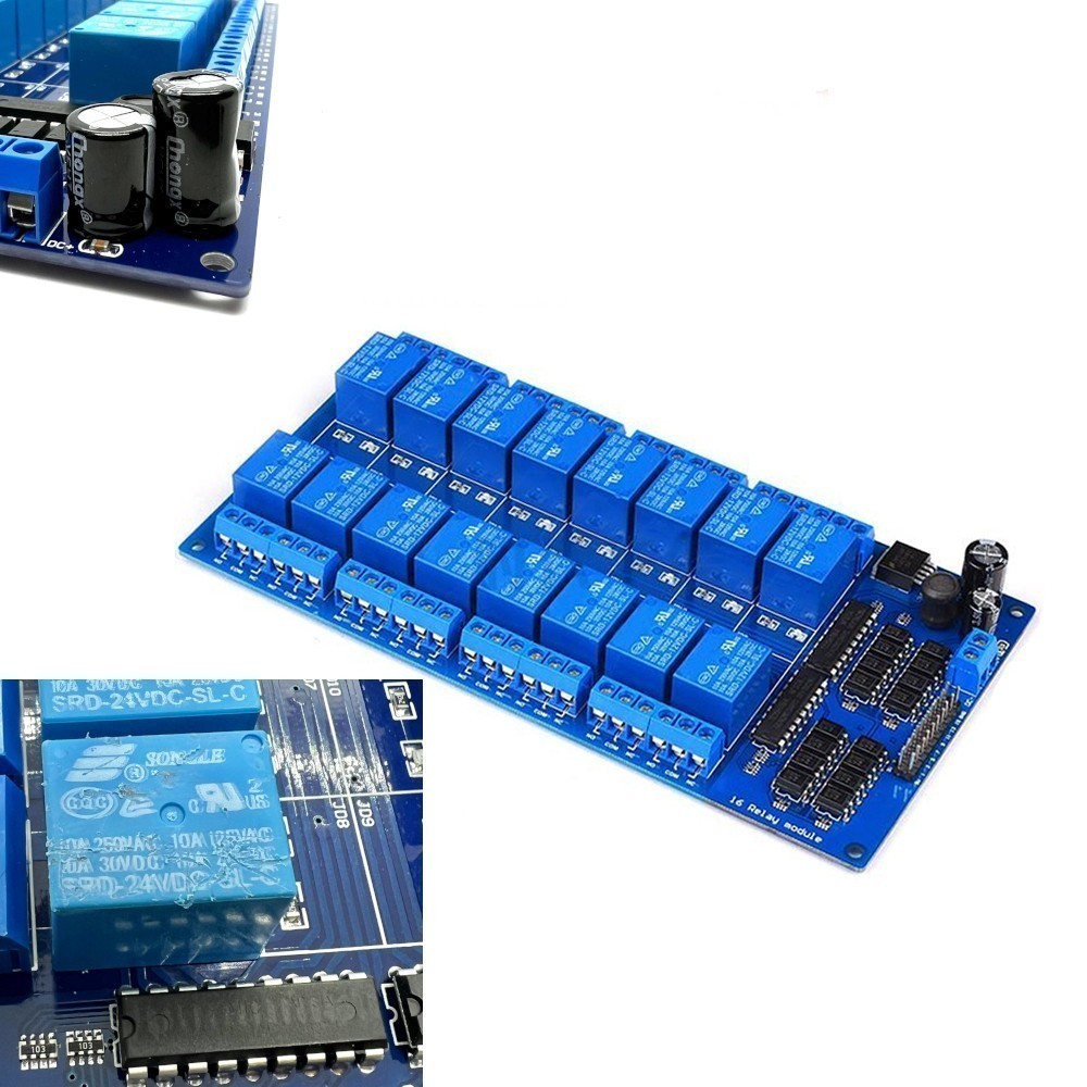 | УЦЕНКА - 16-Channel 24V Relay Module for Arduino Релейные модули Arduino Релейный модуль 24 В. 16 каналов. с опторазвязкой. Незначительные повреждения конденсаторов и реле
