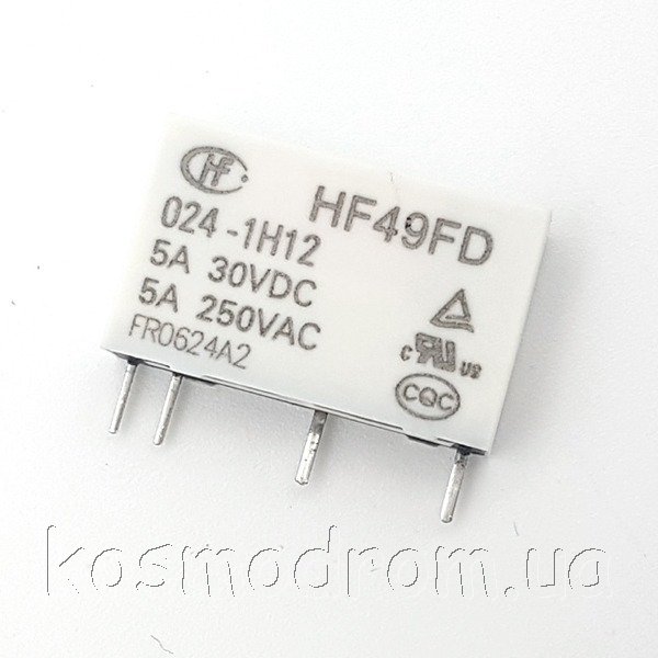 | HF49FD/005-1H12 Реле электромеханическое Тип контактов - замыкающий : 5 Вольт : 5 А. : мощность катушки 120 мВт, Размер:20x5x12.5мм. Расстояние между контактами 7.62 мм