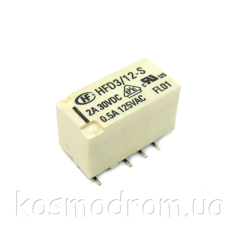 | HFD4/12 Реле электромеханическое Реле: электромагнитное, DPDT(2С), Uобмотки: 12VDC, Комм.0,3A/125VAC, 1А/30VDC, Макс. 2А, Размер: 10x6,5x5,4 мм, Монтаж: DIP