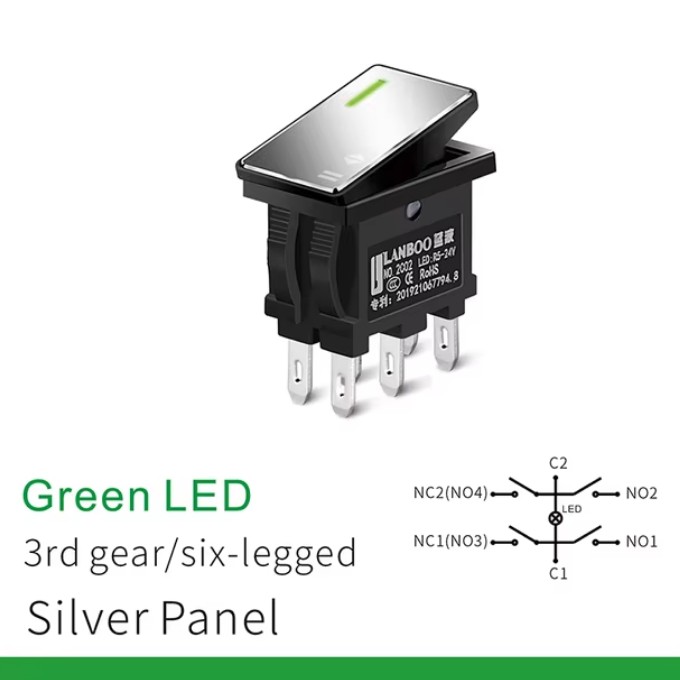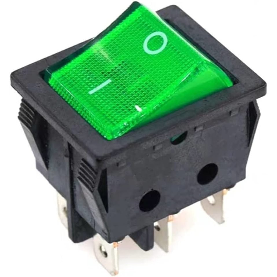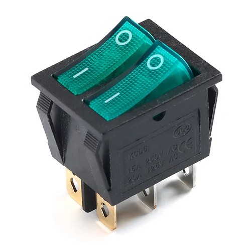 | KCD6 Rocker Switch Green Light 6P Микропереключатель рокерный Микропереключатель рокерный, 6PIN, 16A 250VAC/20A 125VAC, ON-OFF, зеленый, DPST-NO