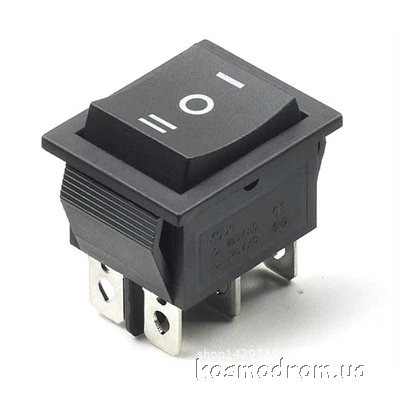 | KCD4 3 Position 6 Pin Black Микропереключатель рокерный Переключатель Rocker ON-OFF-ON, черный, 16А/250В, 20А/125VAC, 6pin.
