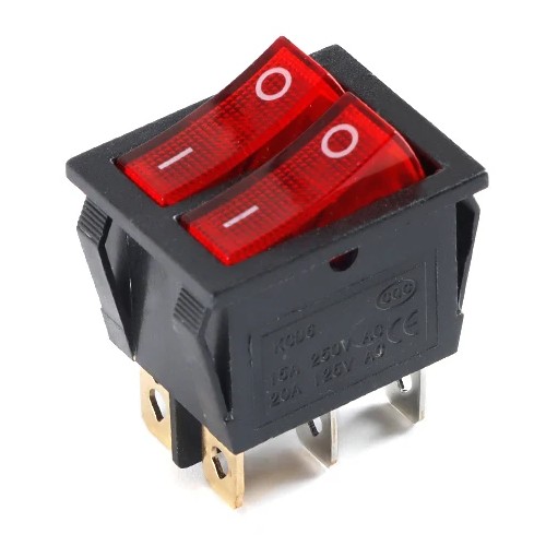 | KCD6 Rocker Switch Red Light 6P 220V Микропереключатель рокерный Микропереключатель рокерный, 6PIN, 16A 250VAC/20A 125VAC, ON-OFF, цвет индикации: красный, DPST-NO