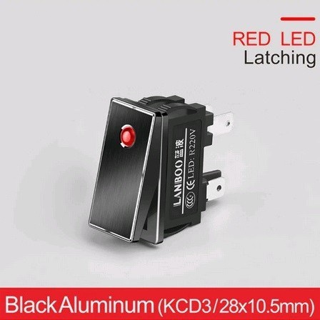 | LB2810.5-5-24V-2NO-Red-Black Микропереключатель рокерный Клавишный переключатель, с фиксацией, 28.4x10.5мм, питание подсветки 5-24 В, красный, панель черная, нагрузка 20A/250VAC