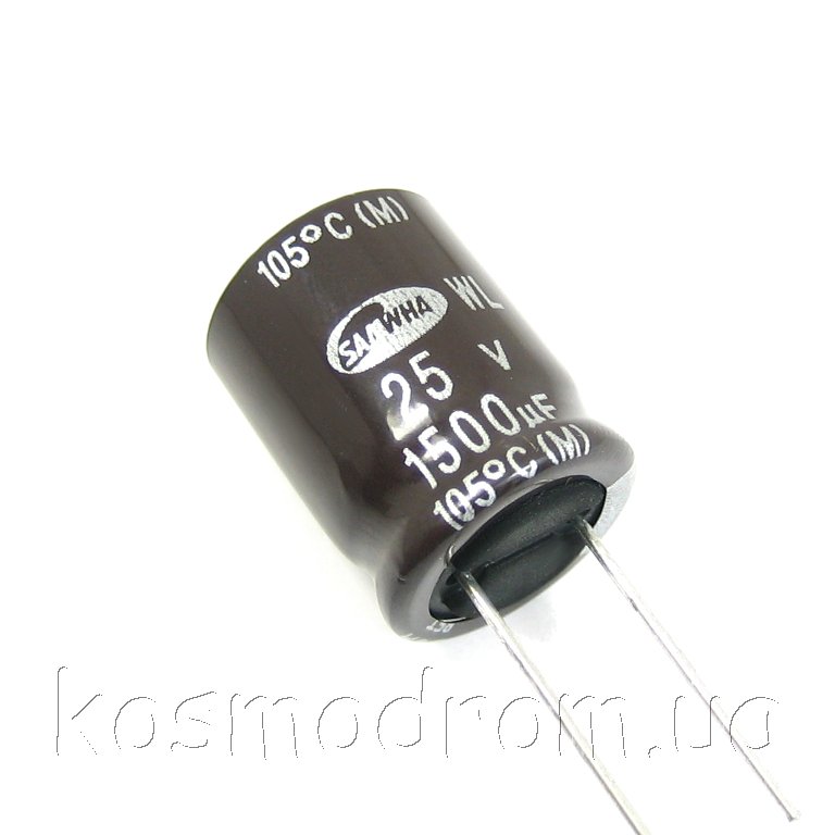 ECAP-LOW-ESR-2200mkf - 25v (WL) Конденсатор электролитический Конденсатор электролитический с низким импедансом: 2200 мкФ, 25 В. Диаметр 16 мм. Высота 25 мм, Импеданс 0,030 Ом WL1E228M16025BB