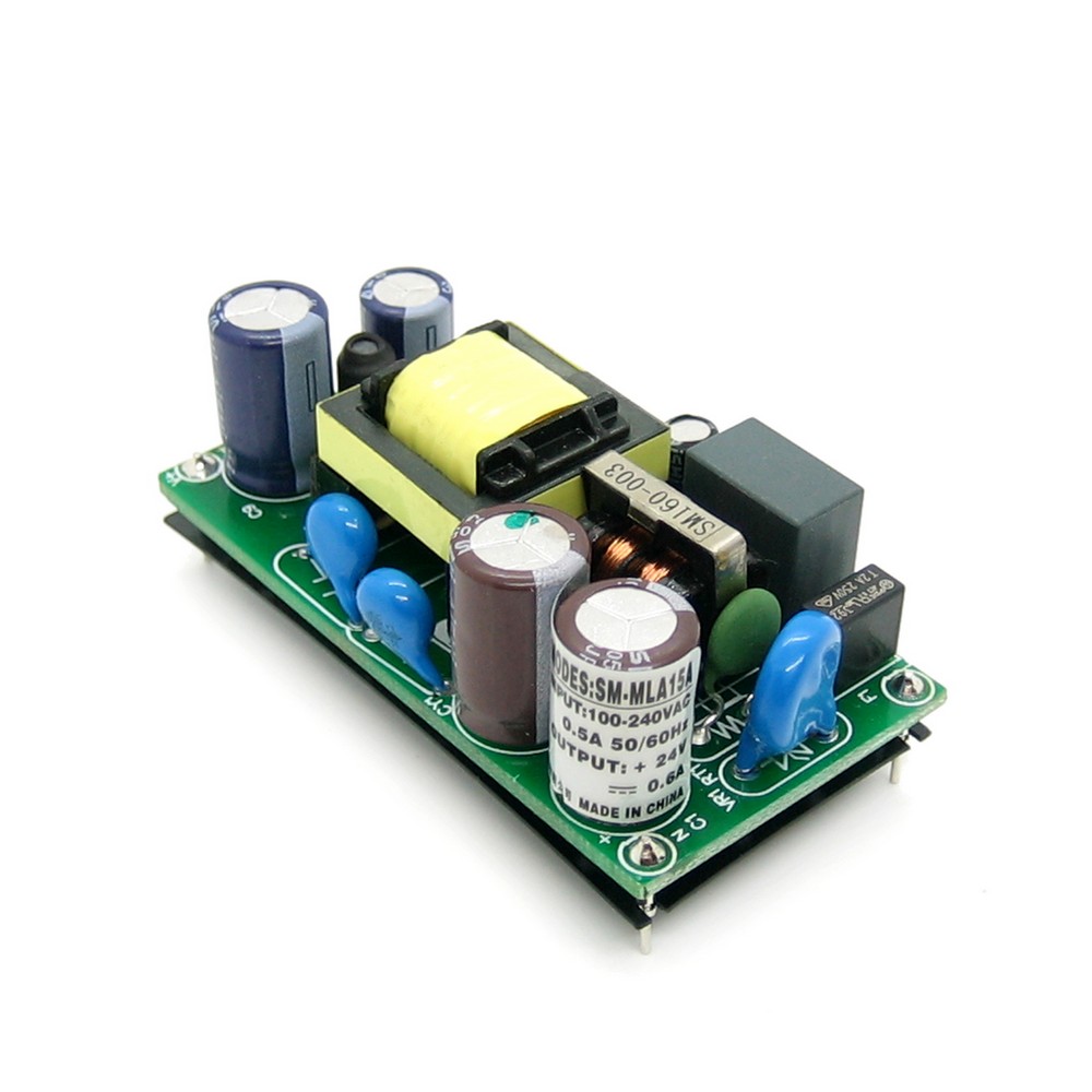 | MLA15A-24 Бескорпусный источник питания AC/DC преобразователь: без корпуса 15 Вт выходное напряжение 24В, Вых.ток 0,63А вход: 85…264VAC / 110…370VDC -30…70°C, количество выходов 1