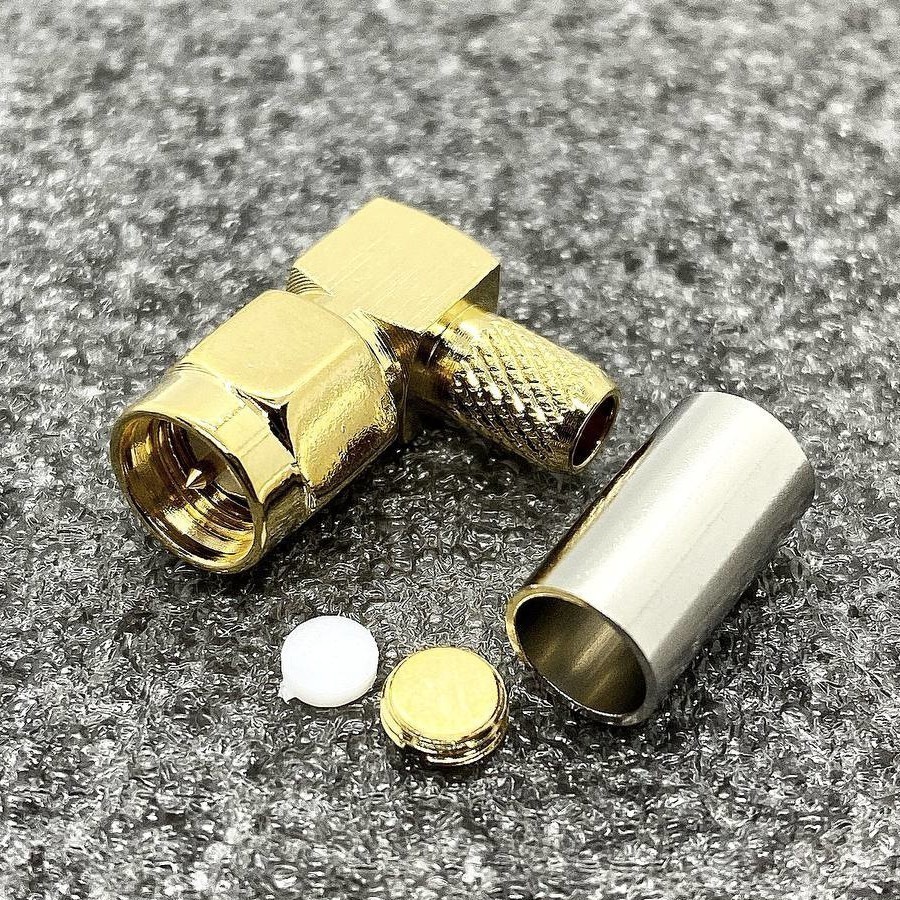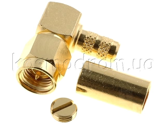 Тип:SMA, вилка, папа, угловой, позолота, под обжим,на кабель. Частота макс.12.4ГГц