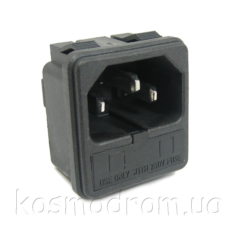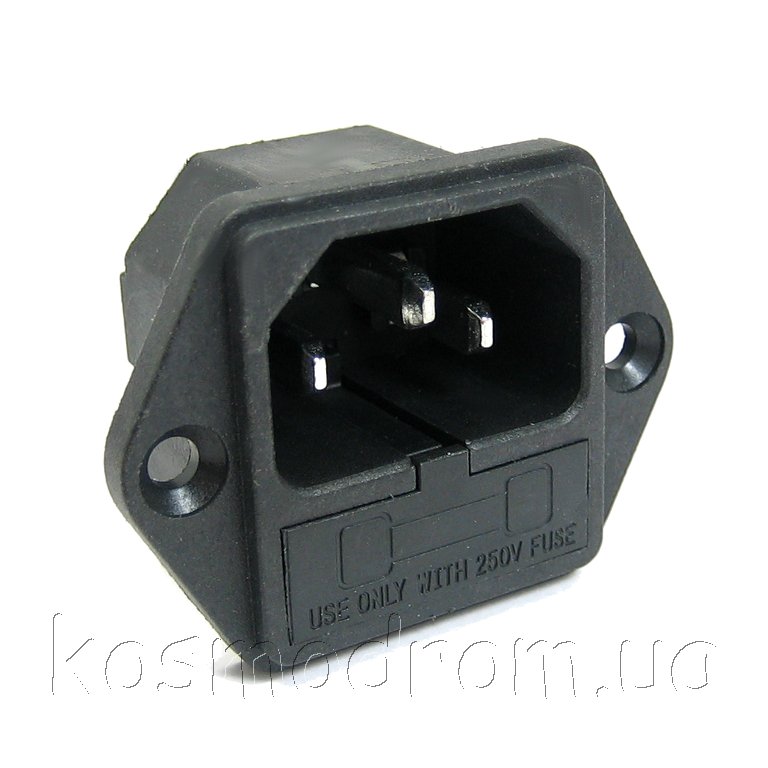 | SP-861 Разъем питания 220v Разъем 220V. Вилка. на блок, 3 контакта, с отсеком для предохранителя, крепление защелка