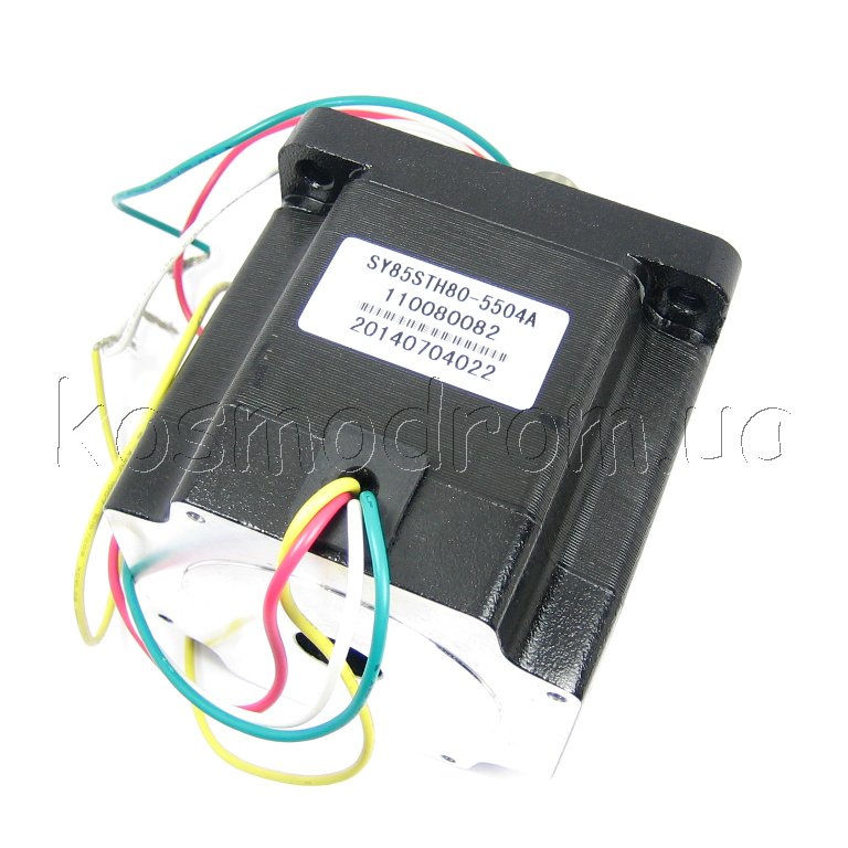 | SY85STH80-5504A Шаговый двигатель Угол шага - 1.8 гр. Ток обмотки -5.5 А. Сопротивление обмотки -0.46 Ом. Момент удержания - 46 кг/см. Вес - 2.4 Кг. Габариты - 85.85 х 85.85 х 80 мм. Диаметр вала - 12.7 мм