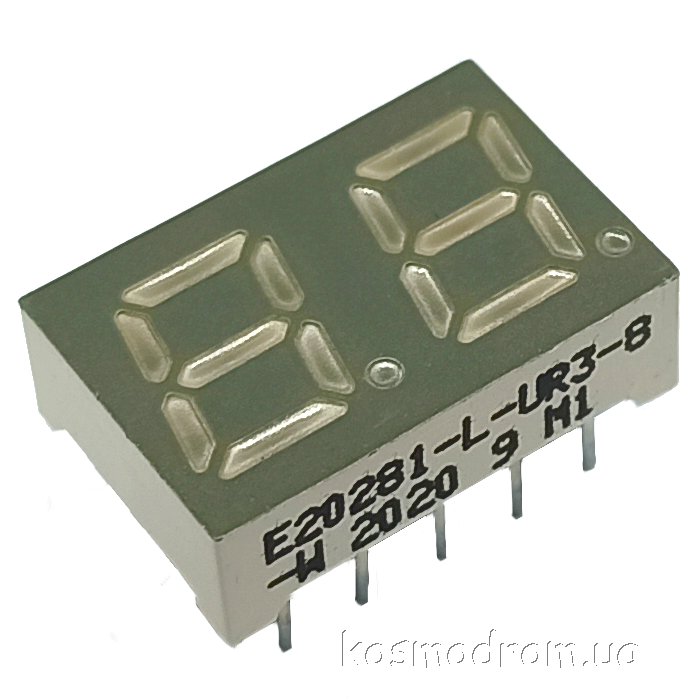 E20281-L-UR3-8-W Светодиодный индикатор двухсимвольный Светодиодный индикатор, общий катод, высота символа 7,11 мм, двухсимвольный, цвет свечения красный. Динамическая индикация