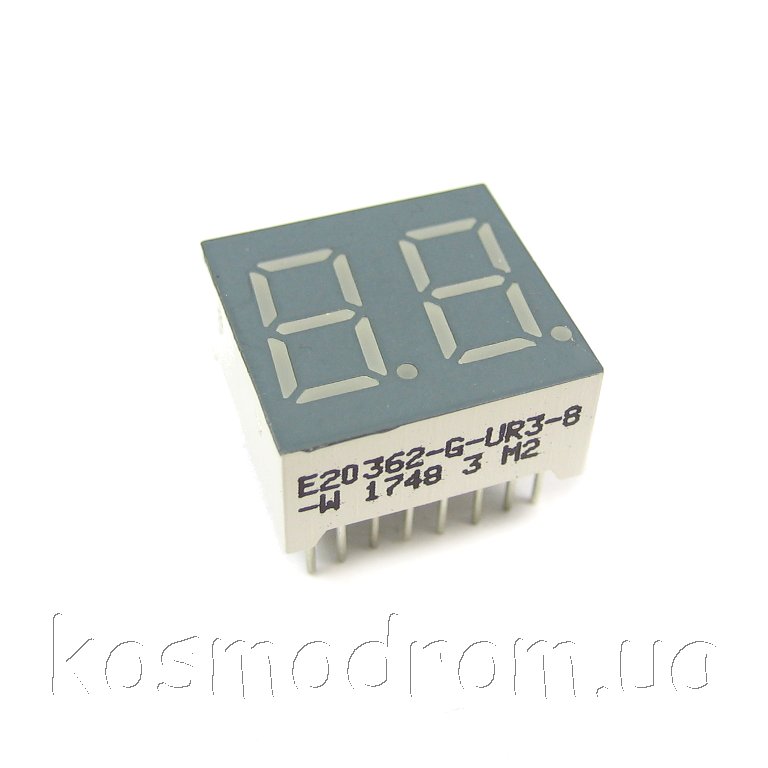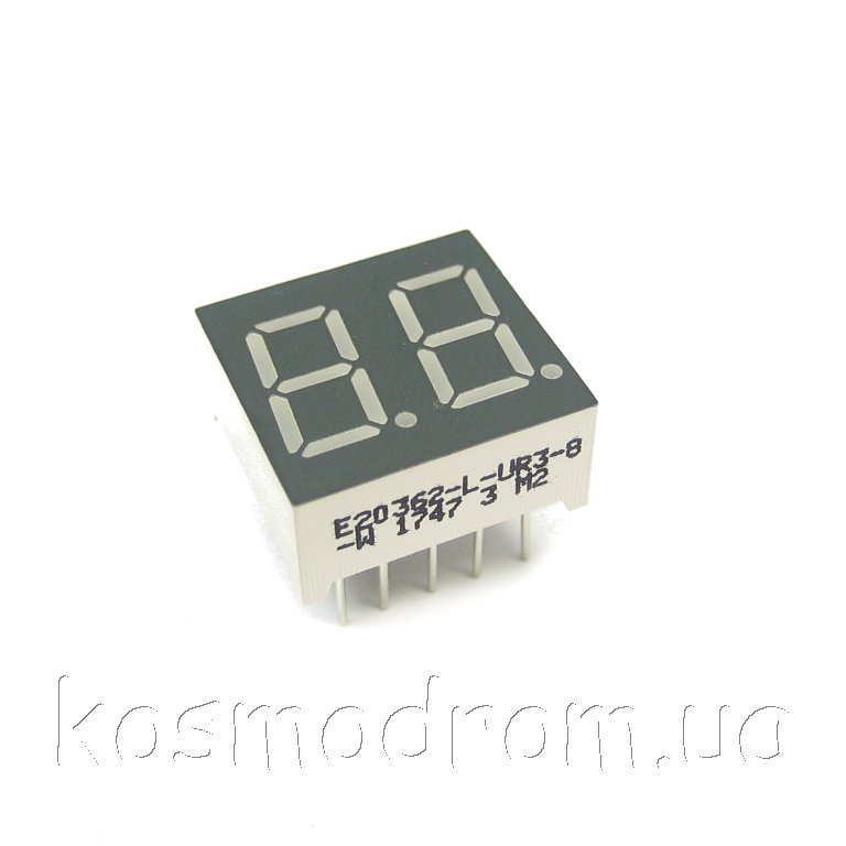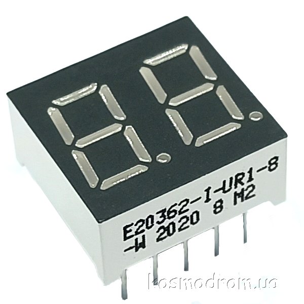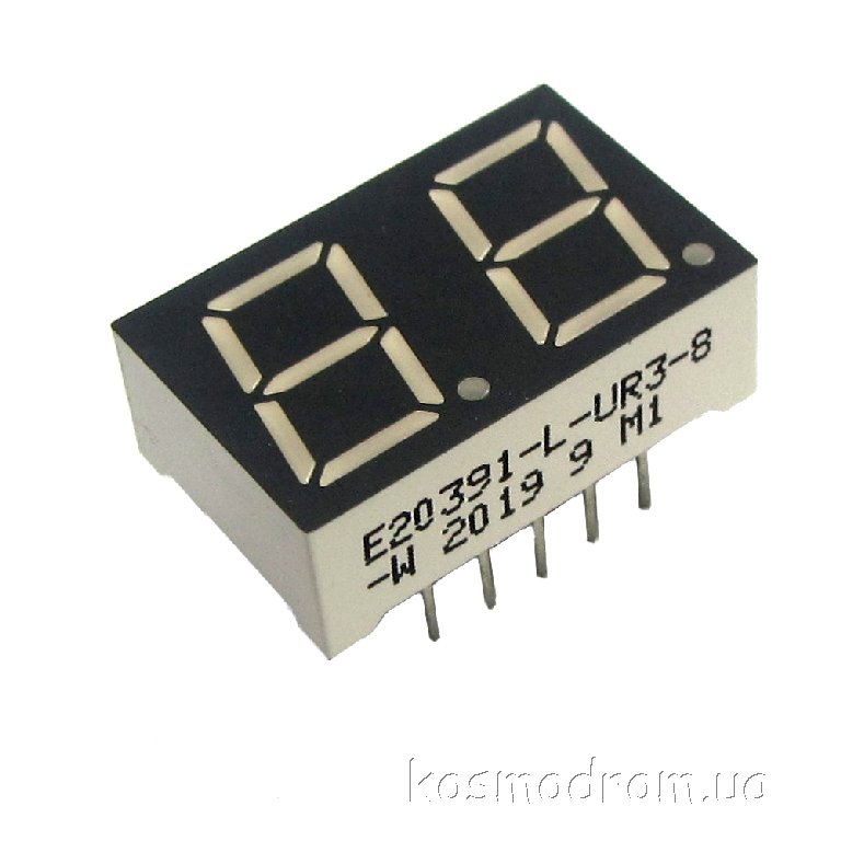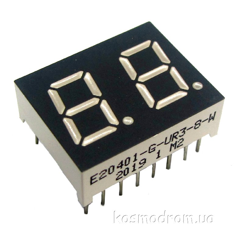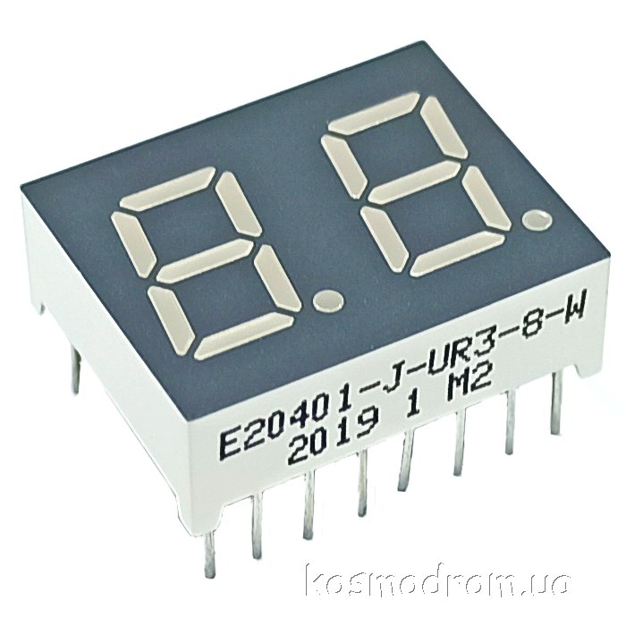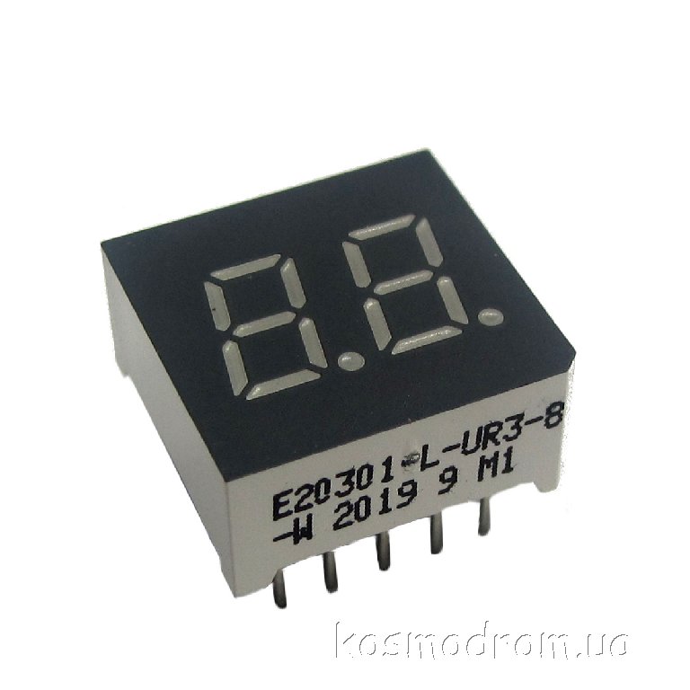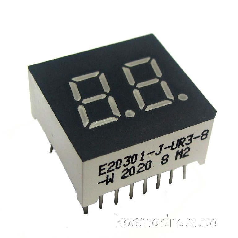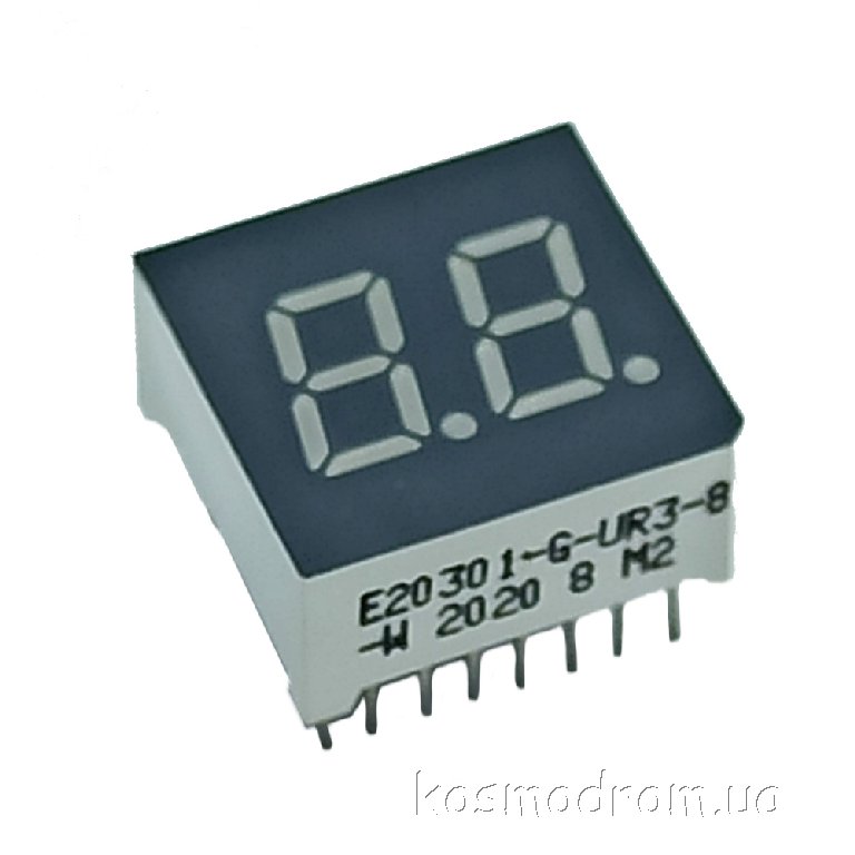 E20301-L-UR3-8-W Светодиодный индикатор двухсимвольный Светодиодный индикатор, общий катод, высота символа 7,62 мм, двухсимвольный, цвет свечения красный. Динамическая индикация
