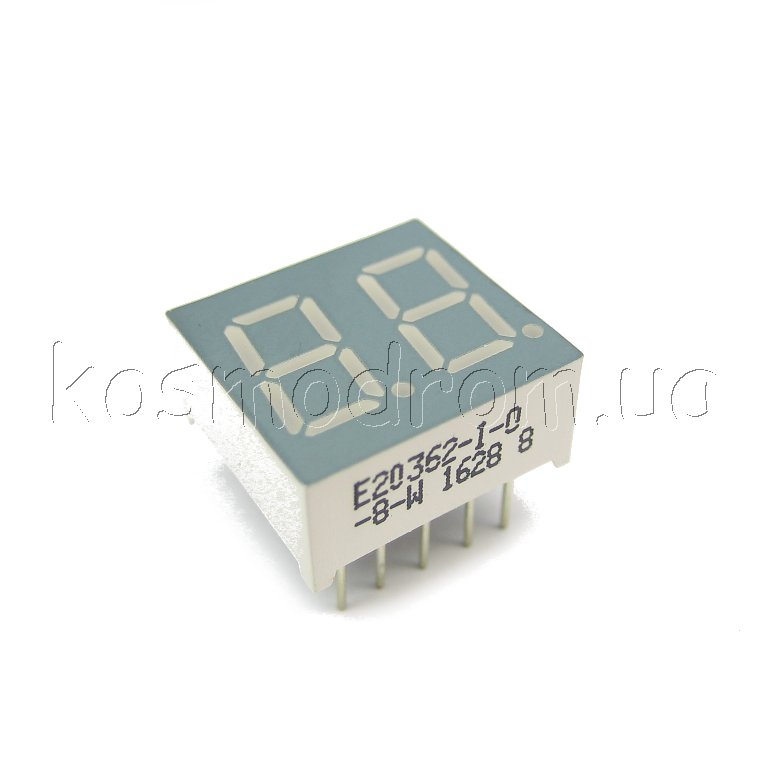 E20362-I-O-8-W Светодиодный индикатор двухсимвольный Светодиодный индикатор двухсимвольный, общий анод, высота символа 9,14 мм, цвет свечения красный яркий, серый фон. Динамическая индикация