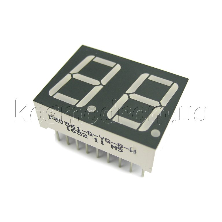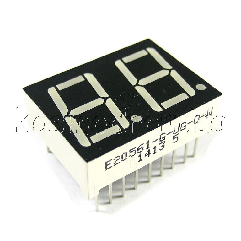 E20561-G-UG-0-W Светодиодный индикатор двухсимвольный Светодиодный индикатор, общий анод, высота символа 14,22 мм, двухсимвольный, цвет свечения зеленый. Статическая индикация