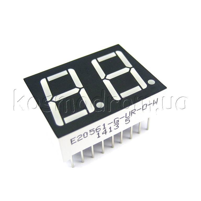 E20561-G-UR-0-W Светодиодный индикатор двухсимвольный Светодиодный индикатор, общий анод, высота символа 14,22 мм, двухсимвольный, цвет свечения красный. Статическая индикация
