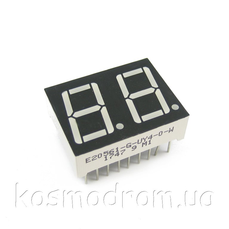 E20561-G-UY4-0-W Светодиодный индикатор двухсимвольный Светодиодный индикатор, общий анод, высота символа 14,22 мм, двухсимвольный, цвет свечения желтый яркий. Статическая индикация