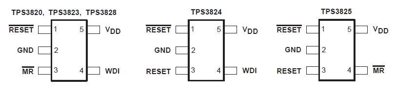 TPS382x – одно из самых популярных семейств супервизоров компании Texas Instruments в компактном и удобном корпусе SOT23-5. В зависимости от серии, микросхемы оснащены функциями: Power-On-Reset, выводом для внешнего сброса, выводами сброса с различными состояниями, сторожевым таймером. Супервизоры выпускаются для напряжений питания: 2.5, 3, 3.3, 5 В.