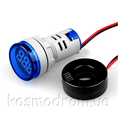 | AD101-22AM-Blue Амперметр Цифровой панельный амперметр. Круглой формы. Трехсивольный. Диапазон измерения 0...100А. Точность: +/-1А. Трансформатор тока в комплекте. Цвет свечения: Синий