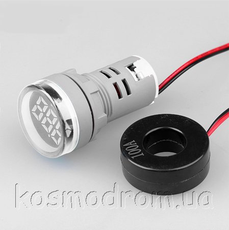 | AD101-22AM-White Амперметр Цифровой панельный амперметр. Круглой формы. Трехсивольный. Диапазон измерения 0...100А. Точность: +/-1А. Трансформатор тока в комплекте. Цвет свечения: Белый